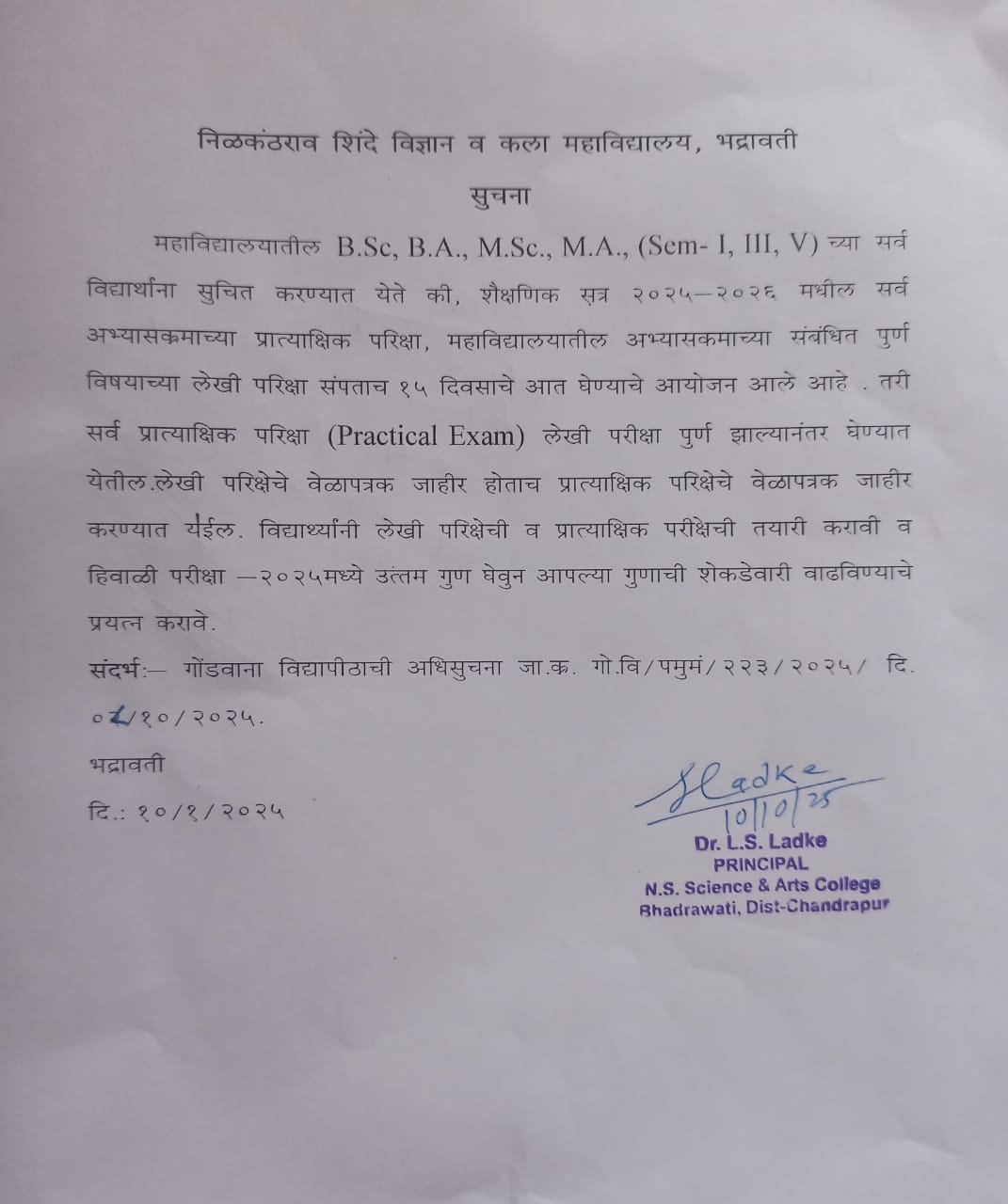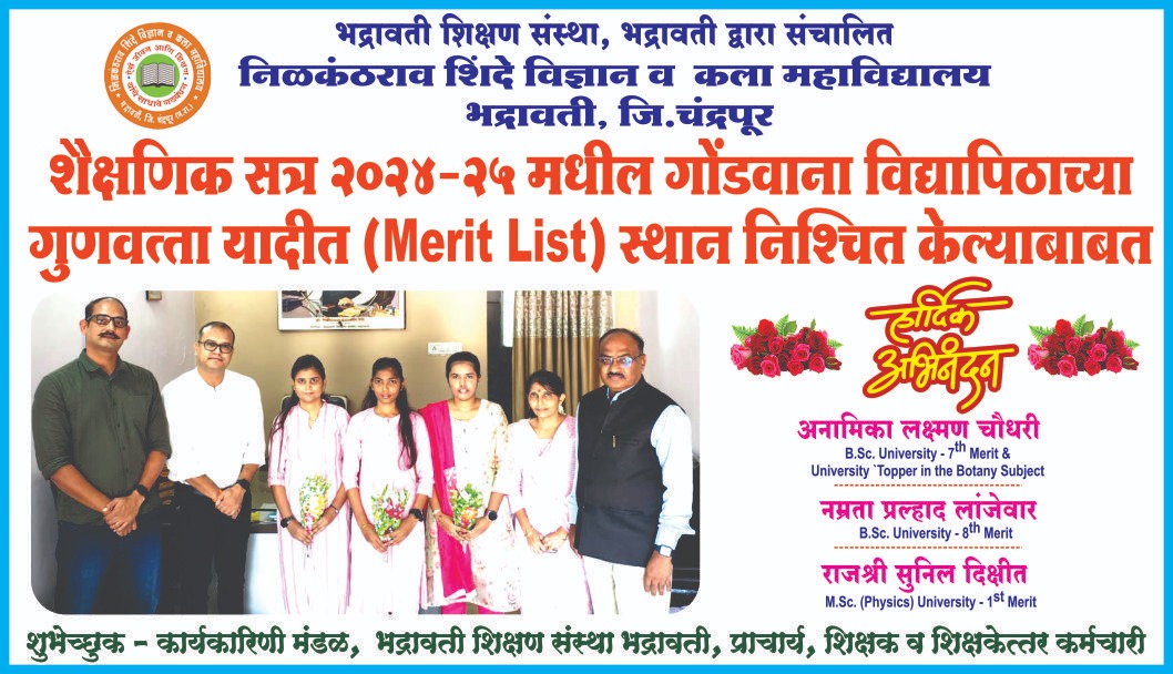 The college that is being run under the aegis of highly qualified management of well established Bhadrawati Shikshan Sanstha, Bhadrawati has earned its own niche not only in the district but also in the Gondwana University. I am glad to signify that with completion of the year 2018, our college has completed 25 years of establishment and we have celebrated silver jublee function of organizing different programs like marathon competition – A run for unity. It is really a matter of immense pleasure for me to be the principal of Nilkantharao Shinde Science and Arts college , Bhadrawati.